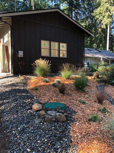 This new construction home, located on Anderson Island was an opportunity to start from the ground up. Focusing on timing the new landscaping to the existing beauty of the island, creating a long term, easy to care for sanctuary surrounding this beautiful home.